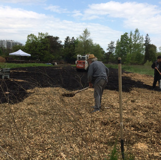 Out with the grass! Over half a hectare - six thousand square feet - of grassy meadow have disappeared under layers of cardboard, compost and wood chips! For our first Meadow Magic Weekend on June 1 & 2, nearly a hundred volunteers, including Mississauga Ward One Councillor #StephenDasko and students from #BronteCollege, joined Blooming Boulevards and the #SmallArmsSociety to begin a site restoration at the #TRCA-managed #ArsenalLands in south Mississauga's #Lakeview district. We are eradicating existing vegetation using a #notill method, which preserves soil structure and retains a healthy population of soil microorganisms to enhance plant growth. In October we'll re-plant the meadow with a carefully formulated mix of indigenous native grass and forb species (wildflowers) which will improve habitat for southern Ontario's 400 rapidly declining species of #nativepollinators.