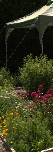 So we go back to Mississauga now and see the astonishing feat of what Mohan has fit into his modest 1,000 square foot backyard; a possible blueprint for city gardens. First, are the native plants and shrubs, in neat beds bordered by wood reclaimed from a deck project. The same wood is used for a bee hotel. The tall seed heads of Joe-Pye weed, black-eyed Susan and others give the garden a rich, interesting look, even in winter. A successful vegetable planter was installed last year. Two composters tuck in the back. There is a small pond for the birds, plus a spray pad for sparrows and warblers.