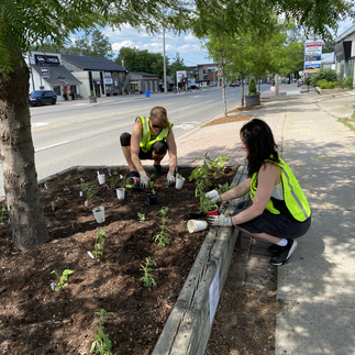 A hardworking group of volunteers organized by the Clarkson Business Improvement Association braved the heat wave and installed THREE big planter beds along the Lakeshore in downtown Clarkson. BB supplied plants and advice, and supervised the installation. This project was at the core of a Mississauga Small Projects Community Grant received by the BIA this spring. Preparing these beds was challenging because of they were filled with lily-of-the-valley, an invasive plant that's hard to remove. A heroic effort was made and finally the beds were ready for the native seedlings. See those smiles? It was a happy day!
